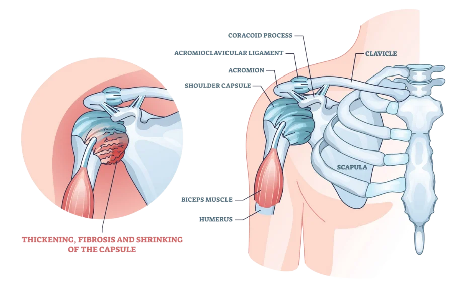 Adhesive capsulitis, often known as frozen shoulder, is a shoulder ailment that affects your range of motion. Scar tissue forms over time when the tissues in your shoulder joint thicken and tighten.